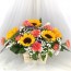One Sided Floral Arrangement w/5 Sunflower and 10 Orange Carnations.